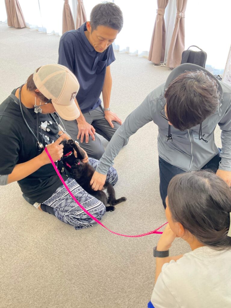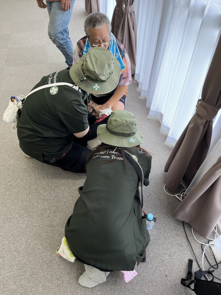 応急仮設住宅内では、最低限の診察しかできませんが、飼い主様にできるだけ安心していただくよう寄り添う医療を提供させていただきました(図12)。
