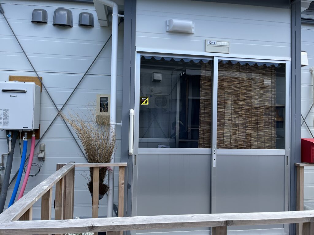 ▲図11. 2重ドアのため逃走防止になっている&猫のいることを示すシールあり