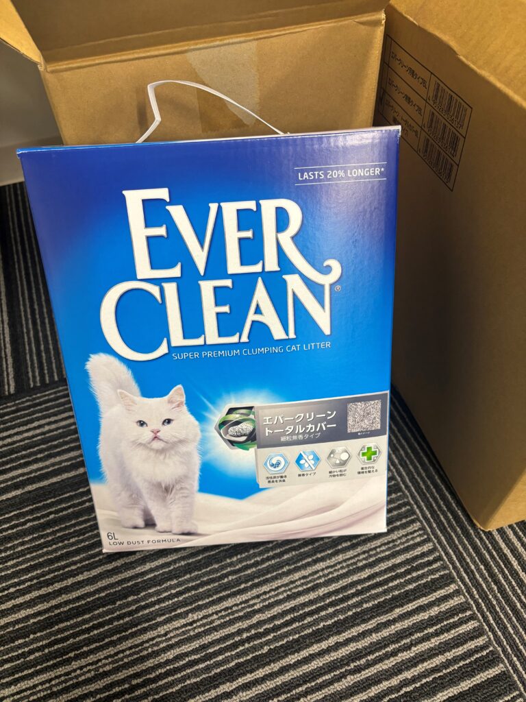 支援から帰宅後、新東亜交易株式会社様へ猫砂の提供を依頼し、支援していただきました(図5)。