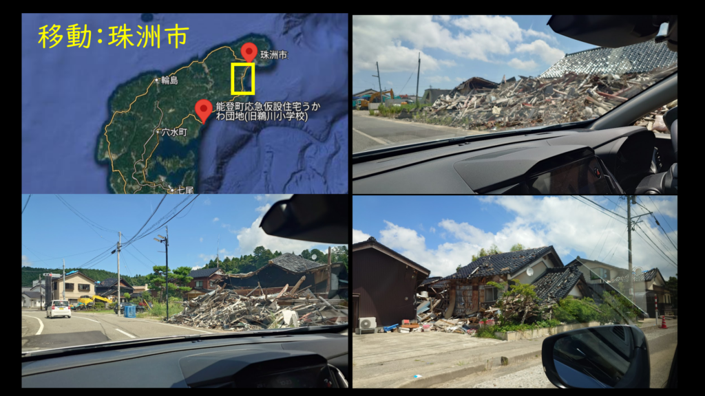 避難所までの移動で、まず驚きだったのは、7カ月も経過しているのに目の当たりした珠洲市の光景でした(図6)。