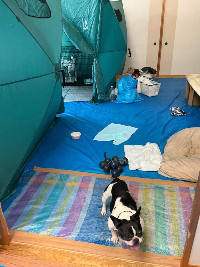 避難者はほぼ仮設に移動され、犬2頭と猫1頭、2家族だけとなっておりました(図7)。