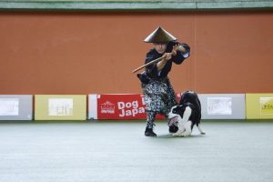 2.ミュージカル・フリースタイル:犬が危険と思われる動作以外、どんな動きでもOK。ハンドラーと犬が離れる遠隔の動きや、小道具の使用、オリジナルの技も可能