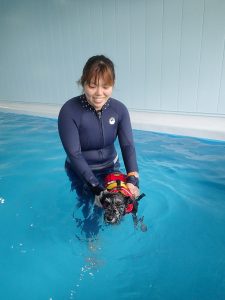 ドッグプールにはスタッフ1名が一緒に入り、わんちゃんに泳ぎをお教えしますので、泳ぐのが苦手、泳いだことがないというわんちゃんも安心して利用することができます。