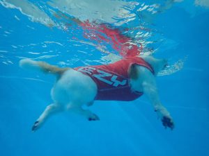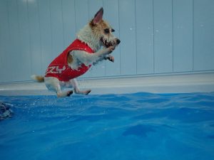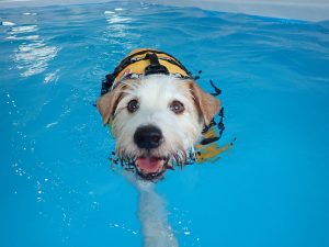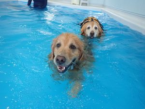 水中運動は、関節へのストレッチ効果があり、全身運動にもなるので、リハビリや怪我への予防にもつながります。ドッグプールでは海や川と違い、波や流れがないので、初めて泳ぐ子や体力に自信のない子でも安全に泳ぐことができます。