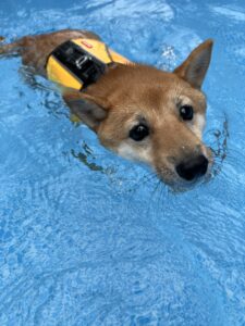 これでは、犬も泳ぎにくいし、水泳は動的ストレッチ効果(関節を動かしながら伸ばす)が期待できる運動なのに、関節が動かしにくければ効果が弱まると考えられます。