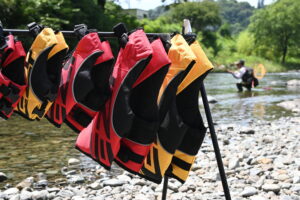 大きすぎるものを着させると、ライフジャケットと体の間にスペースが出来てしまい、ライフジャケットだけが浮いてしまいます。その隙間に足を引っかけたり、すっぽ抜けたりする危険性があります。