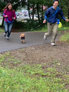 森の中にあるコースは、他のフィールドよりもひんやりとしており、走るととっても気持ちが良く、ご参加いただきました皆ワン&皆さまは、楽しそうにFINISHまでランニングされていました。