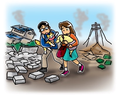 ・普段から家族で散歩中、在宅中、通勤通学中の避難場所や連絡方法などを話し合っておく。