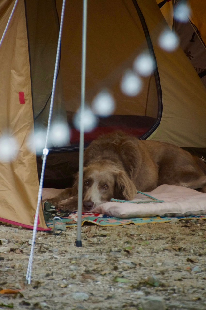 自分の居場所から私たちが焚き火を囲む様子をのんびり眺めています。