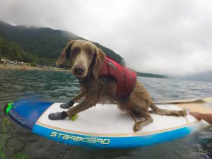 暑い時はジャバジャバ海に入って泳ぎますが、ボードに乗せると別犬!